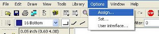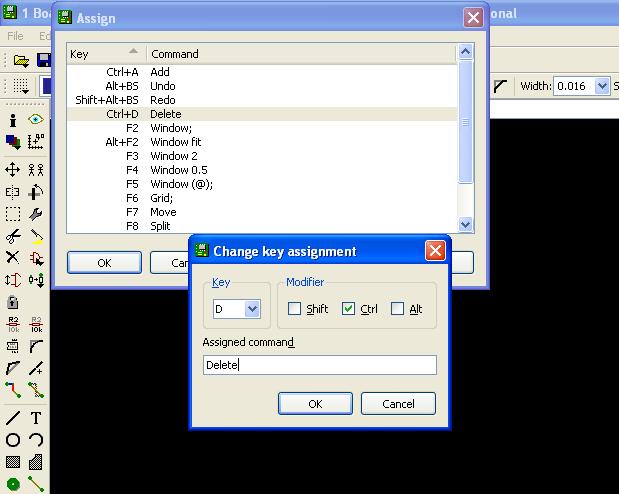 Untuk mempercepat kerja kita dalam menggunakan berbagai tool di eagle kita dapat menggunakan fasilitas pada menu option kemudian Assign dalam menu tersebut kita bisa membuat berbagai macam shortcut untuk menjalankan tool tertentu sesuai keinginan kita.